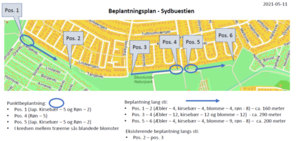 Der skal plantes i alt 200 træer, hvilket ikke er nok til at plante langs hele stien nu, men forhåbentlig bliver der mulighed for at plante flere træer i de kommende år.