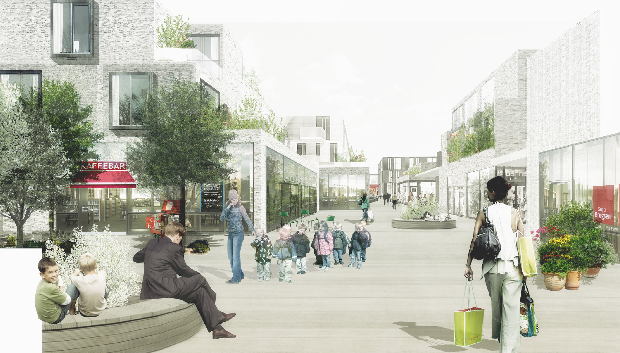 En blanding af boliger og butikker samlet om et stræde vil skabe den koncentration af liv, der er forudsætningen for en spændende bymidte med butikker og aktiviteter. Det er visionen i det vindende forlag i den arkitektkonkurrence, der blev gennemført i 2014.
